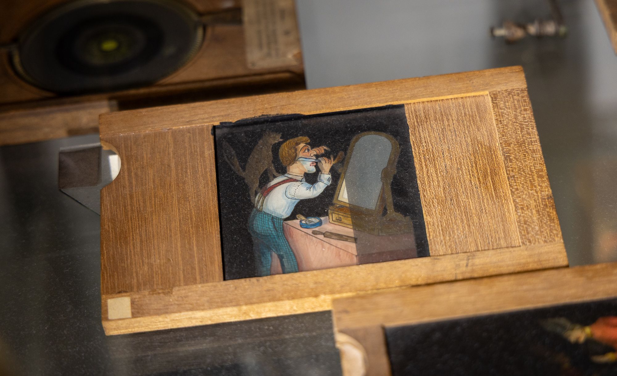 Mich persönlich hat aber die Sammlung alter Projektoren, Kameras und Filmtechnik im Allgemeinen am meisten begeistert. Ich bin bestimmt eine Stunde vor den Vitrinen hin- und hergelaufen, aus Sorge, dass ich etwas noch nicht gesehen haben könnte. Details ohne Ende und die eigene Kamera dabei stets im Anschlag. So ist es denn auch nicht verwunderlich, dass die aktuelle Fotostrecke etwas umfangreicher als gewöhnlich ausgefallen ist.